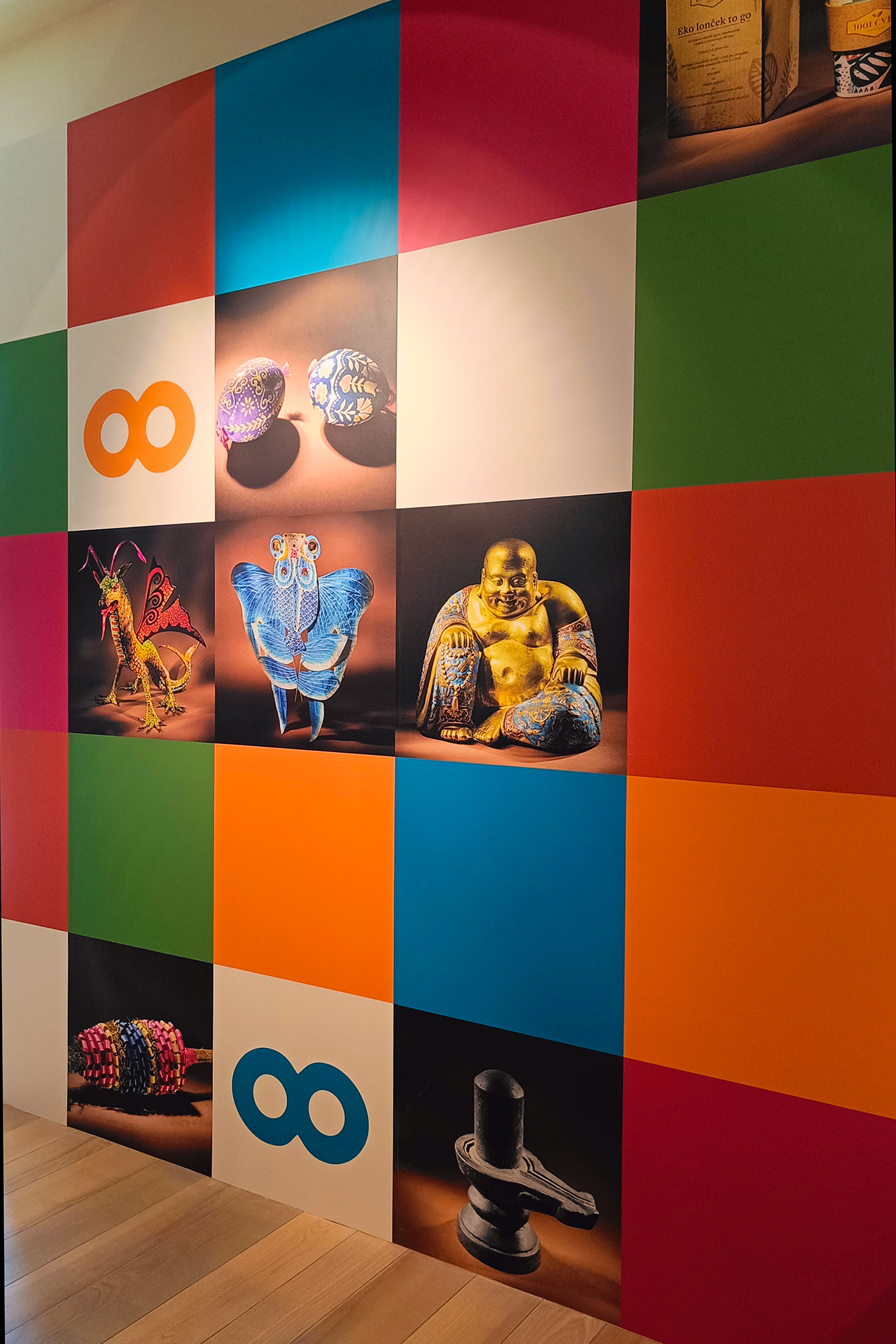 The graphic identity of The First 100 is deeply intertwined with the concept of time's relativity and contextuality. The new logo serves as a symbol of time's infinity, encapsulated within the loop of its own movement. The design system emphasizes versatility and adaptability. The color system, derived from the primary chromatic scale, is showcased through 100 carefully selected objects. When combined with the chosen font—a bold, modern typeface with organic undertones—the design elements ensure maximum flexibility and compatibility across various graphics at exhibitions, digital media, and other applications.