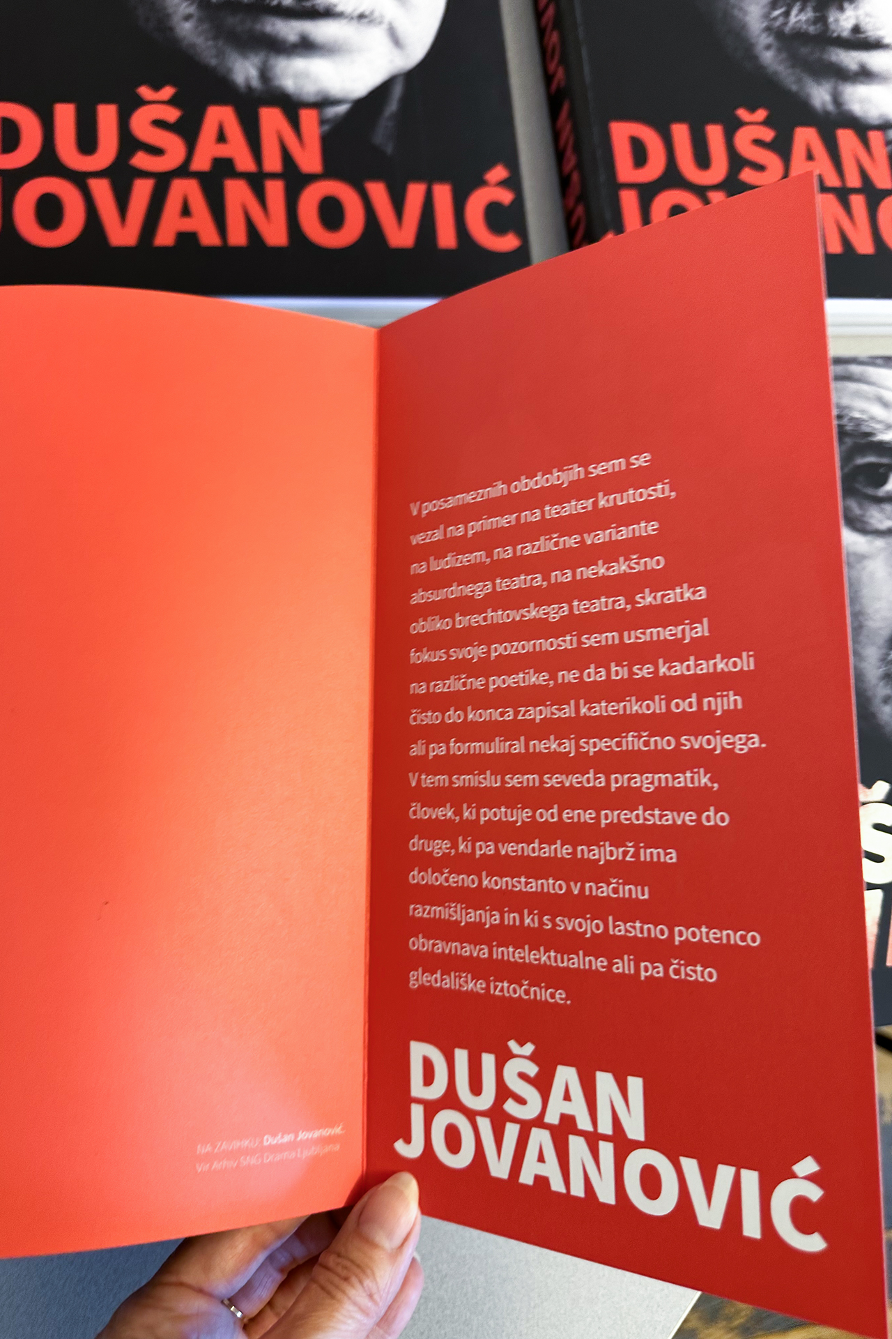 ”The stage is the world, reflecting all of its facets. So, the book about one of the most important creators of Slovenian theatre should not prettify per se. It must offer a frame for the scientific as well as artistic expression of theatrical and other witnesses to Jovanović's rich heritage.”